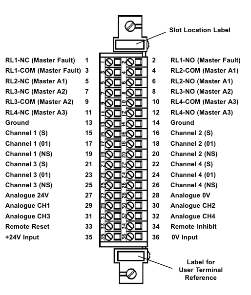TA is installed on 32mm or 35mm DIN rails and can be installed in the same cabinet or adjacent cabinets as the module (with a maximum cable length of 30m)