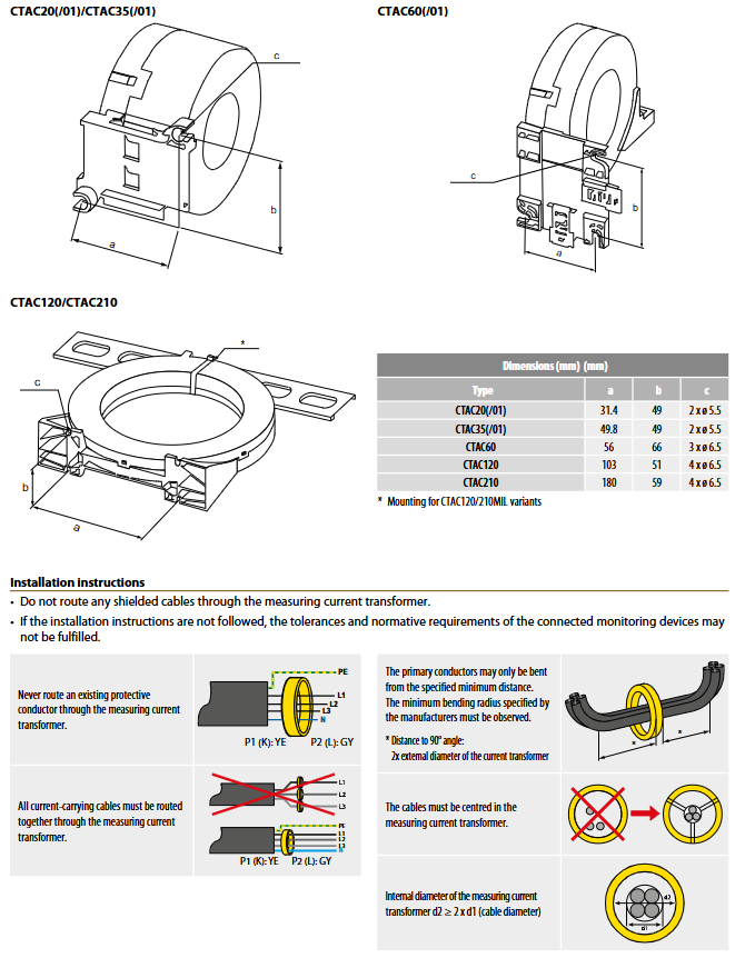 All current carrying cables must pass through the core of the transformer, and protective conductors and low resistance conductor circuits must not pass through the core;