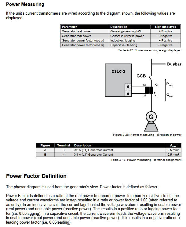 Power factor: Positive values indicate inductive/lagging, negative values indicate capacitive/leading