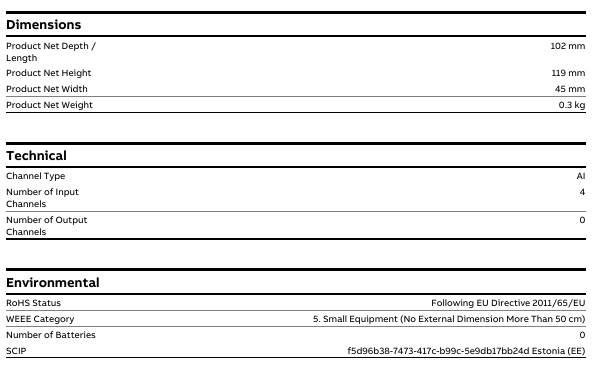 Product Description (Catalog Description) AI820 Analog Input 4 ch (1 module with 4 analog input channels, clear functional positioning)