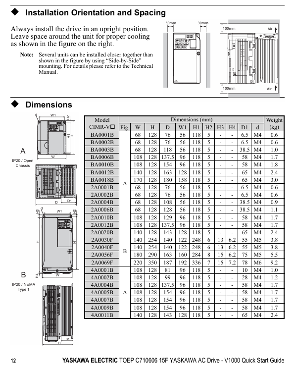 B U1000 2 0104, 2 0130, 4 0096, 4 0124; U1000L 2 0081, 2 0104; Z1000U 2 0104, 2 0130 only M3 screw option CN1 direct connection to driver reserved interface 25