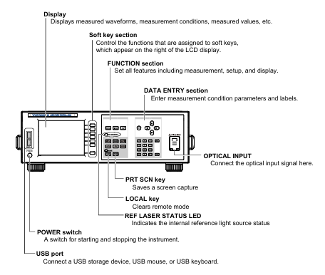 Optical modulator OPT OUT → DUT → Optical receiver (AQ2200-631) OPT IN