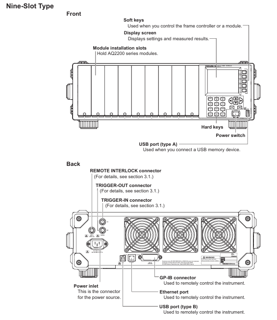 RoHS compliance: The instrument itself complies with EU RoHS, but if incompatible modules (such as AQ2200-111, AQ2200-131, etc.) are installed, it becomes invalid. The list of incompatible modules can be found in Section 5.1