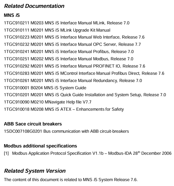 Associated System: Designed specifically for MNS iS System Release 7.6 to guide communication and control integration of MConnect interfaces, supporting the integration of MNS iS as a fieldbus component into PLC or higher-level process control systems (PCS/DCS).