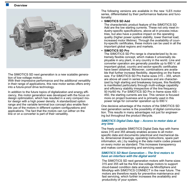 Scope of application: Focusing on SIMOTICS SD 1LE5 series cast iron shell low-voltage three-phase asynchronous motors, with machine base sizes covering 400-450 and rated power of 355-1000kW, mainly used in industrial equipment such as pumps, fans, compressors, conveyors, extruders, cranes, etc;