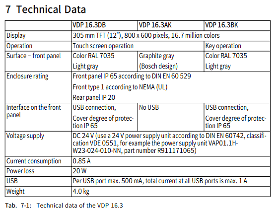Parameter category VDP 16.3 VDP 40.3 VDP 60.3 Remarks