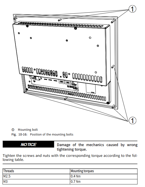 Tightening torque: 0.4Nm for M2.5 bolts, 0.7Nm for M3 bolts, 1.4Nm for M4 bolts, and 2.8Nm for M5 bolts to avoid damaging mechanical structures due to improper torque.