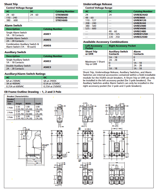 NEB 1/2/3 pole 15A-125A 100kA (1 pole), 85kA (2/3 poles) 14-3/0 AWG (copper/aluminum wire) UL, CSA, IEC, CE